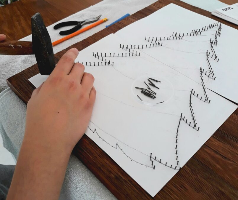 Together we had made several single-color and multi-color string art projects, but this marked our first 3D string art. It involved not only nails and thread, but also other materials, making it a more intricate undertaking than our previous creations.
